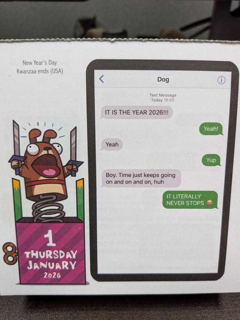 It’s the weekend, and we have started it with scrambled eggs, biscuits and gravy. For me, I have had 3 cups of coffee, which I normally do 2 cups. Weekends are made for indulgences and that sort of thing. I hope we all have a good first weekend of 2026. It’s weird to say 2026 come to think of it. Love and peace and coffee, everyone.