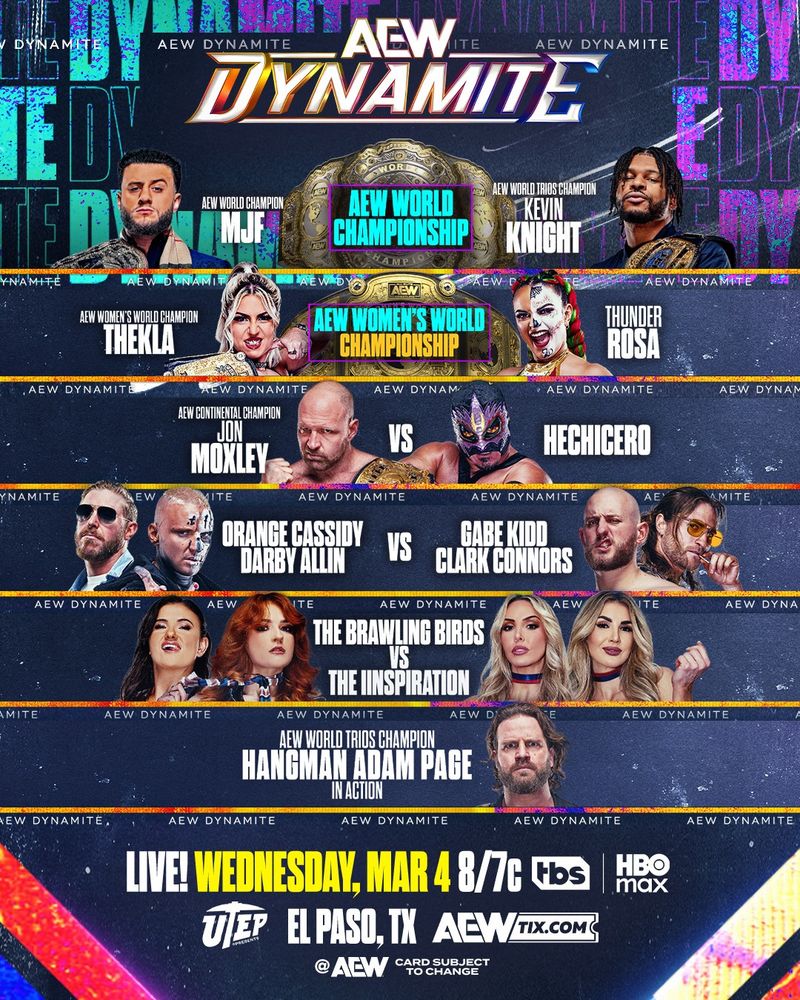 It’s Wednesday and you know what that means! Wednesday’s are for wrestling and this is what All Elite Wrestling is up to tonight. I hear some surprises are in store, we shall see.