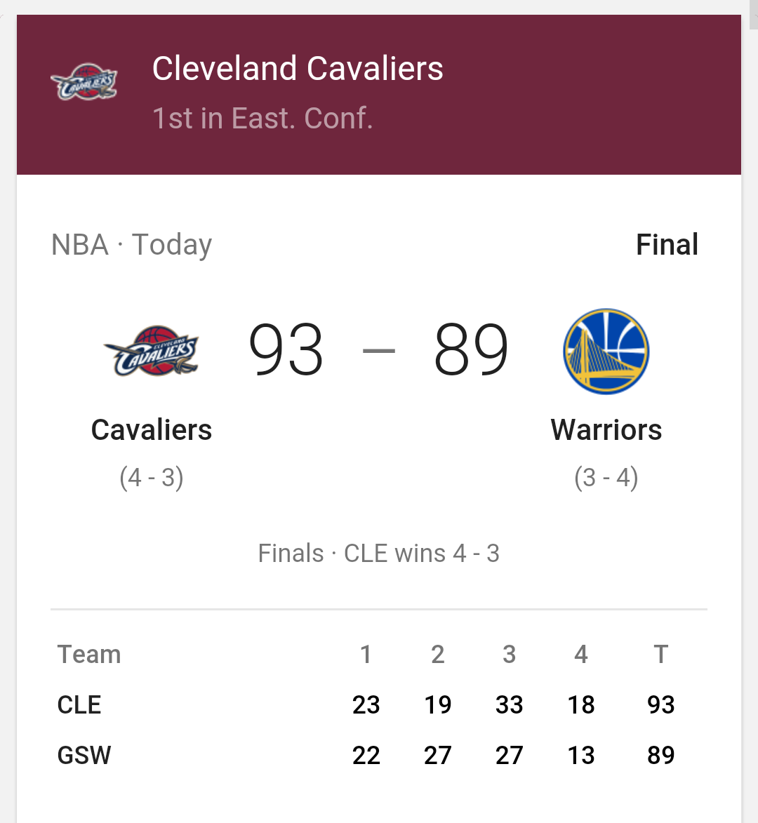 Congratulations to the Cleveland Cavaliers who won the NBA Finals tonight. This breaks the dry spell for sports championships for the city. LeBron James fulfilled a promise to bring a title to his city. It’s a great story of positive action and dreaming.