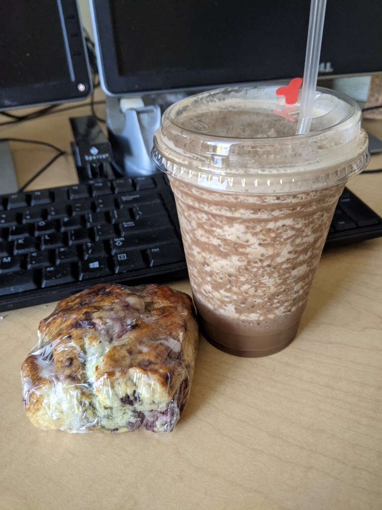It’s been a long week and you deserve a treat. This coffee and scone are treats from Sunnyside Cup coffee, a local place that serves good stuff.
