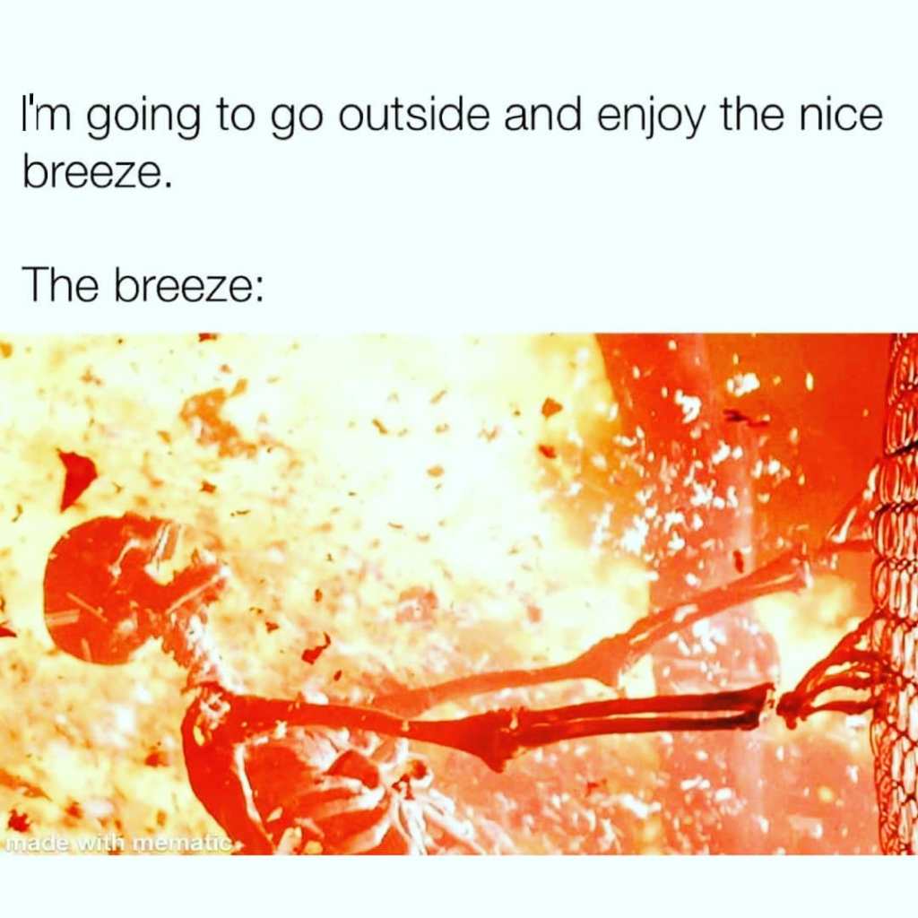 From Facebook this meme is so true right now here in the southern part of the USA and other parts of the country as well. Can it be fall already?