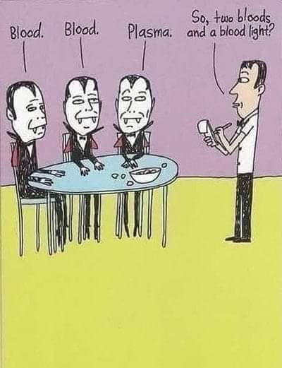 I work for a blood bank and I am called lovingly a vampire so I think this little comic is funny. This sort of humor is great.