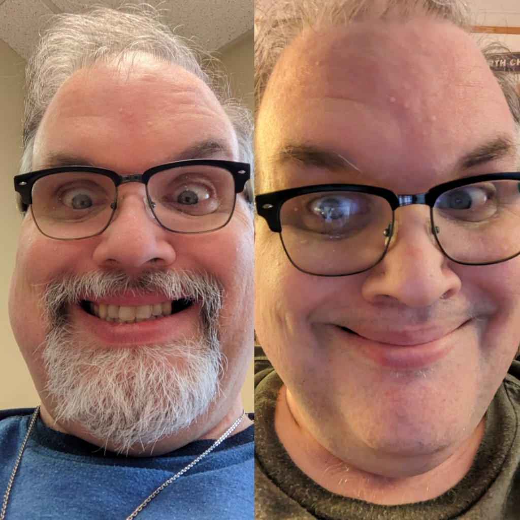 I decided to mow my face after a few months. My goatee was a souvenir from a family trip to Disney back in September of last year. What do you like, before or after?