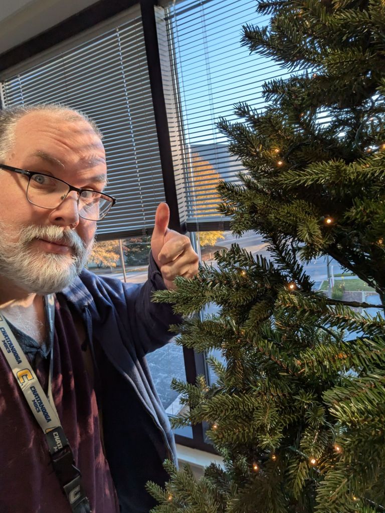 Tony's Posts It’s Dorkmas November 29, 2024 Tony Burgess Leave a comment The office halls are being decked out for the holidays. This tree is hanging out on the floor I work on. Share this: Click to share on Facebook (Opens in new window) Facebook Click to share on Threads (Opens in new window) Threads Click to share on Bluesky (Opens in new window) Bluesky More Click to share on Tumblr (Opens in new window) Tumblr Click to email a link to a friend (Opens in new window) Email Click to print (Opens in new window) Print Click to share on Pinterest (Opens in new window) Pinterest Like Loading... Related