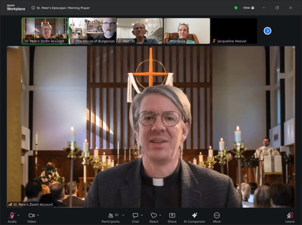 Because of the Winter weather threat in the area, my church went on Zoom to have morning prayer. It turned out that the situation was not as serious as it could have been. This was reminiscent of the COVID era when everything was virtual. Thanks to technology, it’s good to have this option when necessary. It keeps some level of routine and connection with the Divine and community. Thanks to Fr. Drew and Deacon Kelly for making this happen this morning.