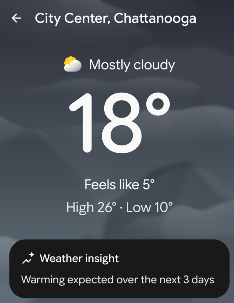 10⁰ colder tomorrow. You might want to wear an actual coat in the morning.