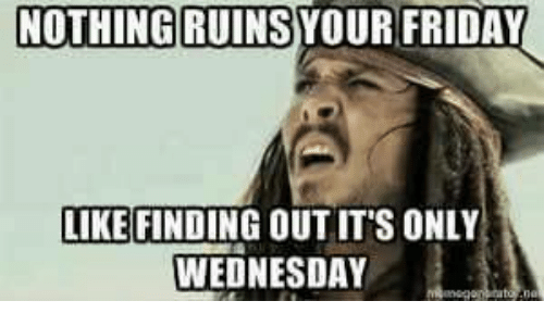 nothing-ruins-your-friday-like-finding-out-its-only-wednesday-123289759095536592424581140.png March 21, 2018 500 × 300 nothing-ruins-your-friday-like-finding-out-its-only-wednesday-123289759095536592424581140.png Share this: Share on Facebook (Opens in new window) Facebook Share on Threads (Opens in new window) Threads Share on Bluesky (Opens in new window) Bluesky More Share on Tumblr (Opens in new window) Tumblr Email a link to a friend (Opens in new window) Email Print (Opens in new window) Print Share on Pinterest (Opens in new window) Pinterest Like Loading...