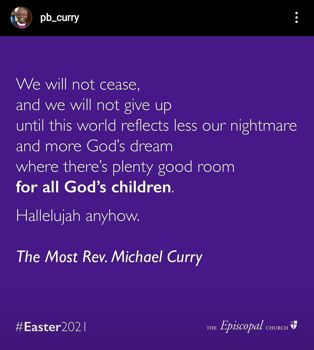 A Easter Sunday message from Presiding Bishop Michael Curry of the Episcopal Church in the USA.