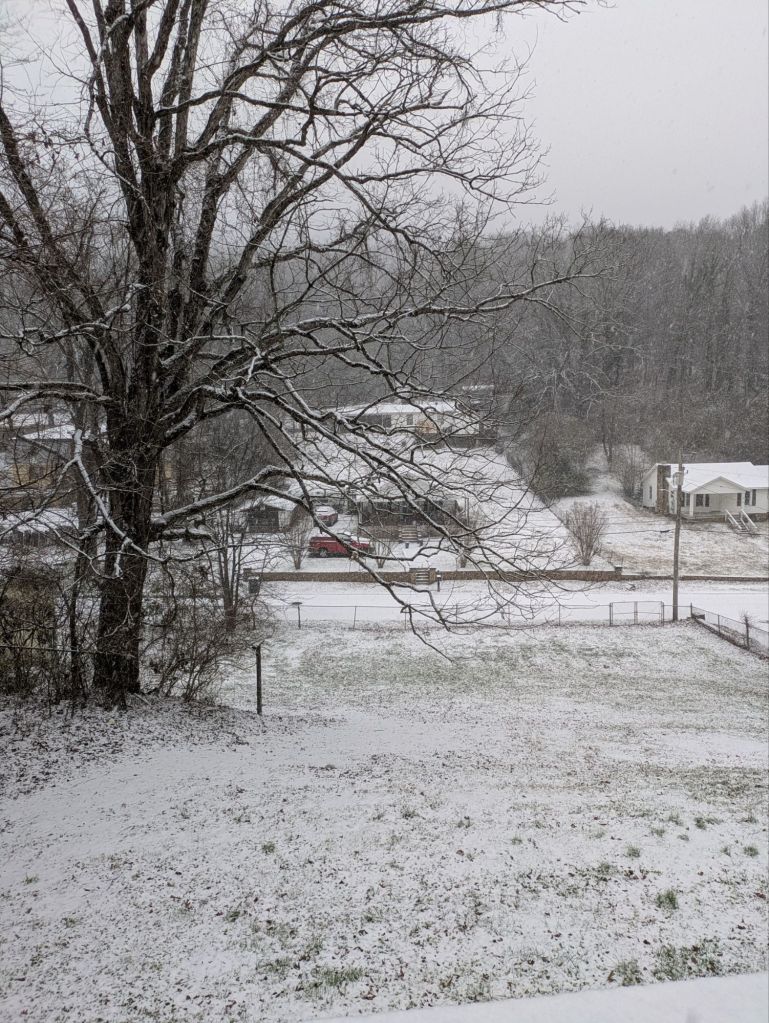 We are having our first snow of 2025. It’s predicted to be about 3 or so inches. Where I live we are not equipped for big time winter events although we have had a couple. It’s pretty to look at but it’s not always easy to get around in. Safe and cozy is the rule of the day except I’m working from home today.