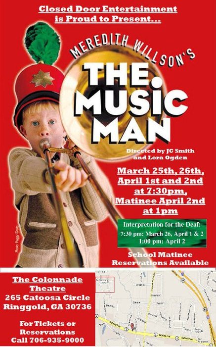 The Music Man – At The Colonnade in Fort Oglethorpe January 15, 2012 437 × 701 The Music Man – At The Colonnade in Fort Oglethorpe Share this: Share on Facebook (Opens in new window) Facebook Share on Threads (Opens in new window) Threads Share on Bluesky (Opens in new window) Bluesky More Share on Tumblr (Opens in new window) Tumblr Email a link to a friend (Opens in new window) Email Print (Opens in new window) Print Share on Pinterest (Opens in new window) Pinterest Like Loading...